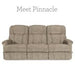 The Pinnacle Wall Reclining Sofa has an easygoing style that’s just right for resting and relaxing. Sink in and enjoy its plushly pillowed tall back and padded rolled arms. The chaise seats and legrests cradle your body in a continuous zone of comfort. Simply use the convenient handles on the outside arms to raise the left and right legrests for reading, relaxing or watching TV. Best of all, you can place this sofa mere inches from a wall.