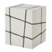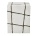 Smooth white garden stool with a striking bronze finish inlay, crafted entirely from Earthenware clay. May be used outdoors, but protection from freezing temperatures is recommended.