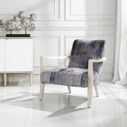 UttermostReminiscent of tie dye, this statement accent chair features a unique abstract charcoal, gray and blue chenille fabric with a gently curved exposed...