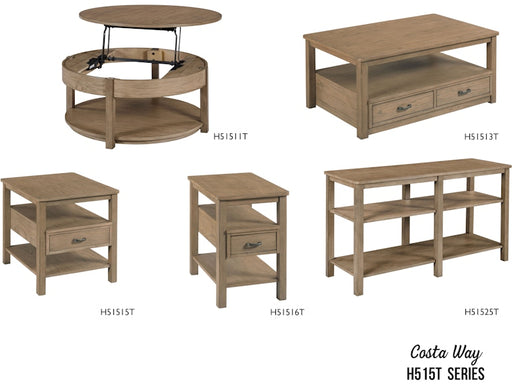 England FurnitureThe Costa Way collection includes a lift top round cocktail table, rectangular cocktail table, rectangular end table, rectangular chairside table, ...