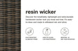 | Details | All-weather resin wicker handwoven over powder coated rust-resistant aluminum frame, Cushion covered in high-performing Nuvella® fabric, All-weather foam cushion core wrapped in soft polyester, Clean fabric with mild soap and water, let air dry; for stubborn stains, use a solution of 4 oz. bleach to 28 oz. water, Imported fabric and fill | |