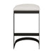 The Maude outdoor bar stool blends industrial style with cozy comfort, featuring a durable, powder coated steel frame in java black paired with a plush cushion in heavily textured taupe gray outdoor fabric.