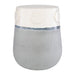 Showcasing a casual look, this ceramic garden stool features an off-white finish top and a complimentary blue gray glaze bottom. May be used outdoors, but protection from freezing temperatures is recommended.