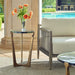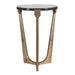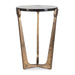 Crafted from a combination of antique brass finished cast aluminum and rich cast glass, this accent table showcases exquisite craftsmanship. The warm tones of the brass frame complement the unique texture of the glass top, creating a truly captivating piece. Suitable for both indoor and outdoor use.