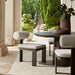 Designed to bring contemporary style to your outdoor oasis, the Bolster Back outdoor dining chair features a sleek java black, powder coated aluminum frame suspending a floating bolster back pillow. Upholstered in a textured oyster white solution dyed acrylic fabric designed to withstand the moisture and dirt that comes with outdoor use.