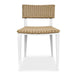 The Calbas dining chair perfectly blends style and comfort. The crisp white, powder coated aluminum frame and hand wrapped, honey toned all-weather wicker create a harmonious look that will enhance any outdoor setting.