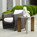 The Reade accent table features an antique brass finish on cast aluminum. Its sleek sandy texture and modern design will complement any contemporary outdoor space. Suitable for both indoor and outdoor use.