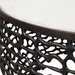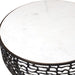 This striking coffee table boasts a white marble top with subtle gray veining, creating a luxurious contrast with the golden dark bronze finish of its intricately patterned cast aluminum base. Due to the nature of natural stone, every piece will vary slightly ensuring yours is unique. Suitable for both indoor and outdoor use.