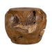 Formed by nature the Sola side table provides organic beauty and function in a natural teak, serving as a decorative art piece while smoothed on top for functionality. Each will vary in size due to being uniquely handcrafted. Cracks and variations in grain are normal. Suitable for both indoor and outdoor use.