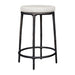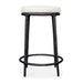 This simple but timeless counter stool is made of cast aluminum with heavy texturing in a java finish. The plush cushion is upholstered in an oyster white solution dyed acrylic fabric that is constructed to withstand the moisture and dirt that comes with outdoor use.
