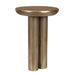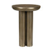 The Thorp outdoor accent table, crafted from durable aluminum with a mottled antique brass finish, offers a blend of modern style and rustic charm. Its unique design and weather-resistant construction make it an ideal addition to contemporary outdoor spaces.