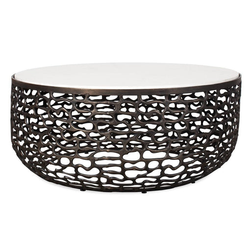 UttermostThis striking coffee table boasts a white marble top with subtle gray veining, creating a luxurious contrast with the golden dark bronze finish of ...