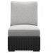 | Details | Includes 5 pieces with cushions: 2-piece loveseat, curved corner chair and 2 armless chairs, All-weather resin wicker handwoven over rust-resistant aluminum frame with durable powder coated finish, Powder coated aluminum resists rusting and fading, All-weather foam cushion core wrapped in soft polyester, Zippered cushions and throw pillows covered in solution-dyed high-performance fabric, Nuvella is an outdoor fabric that can be cleaned and offers UV resistance , Clean fabric with mild soap and water, let air dry; for stubborn stains, use a solution of 4 oz. bleach to 28 oz. water, Throw pillows included, Stainless steel hardware, Designed to withstand the harsh elements of the outdoors, Assembly required | |