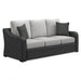 Sporting an easy-on-the-eyes elegance, this sofa elevates the art of alfresco living. Beautiful and durable enough for indoor and outdoor use, this high-style/low-maintenance sofa entices with plush, removable cushions wrapped in Nuvella® fabric that’s a breeze to keep clean.