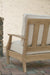 Details Made of eucalyptus wood, 5-step protective coating process, Zippered cushions covered in high-performing Nuvella® fabric, Clean fabric with mild soap and water, let air dry; for stubborn stains, use a solution of 4 oz. bleach to 28 oz. water, All-weather foam cushion core wrapped in soft polyester, Imported fabric and fill, Assembly required