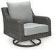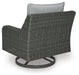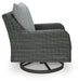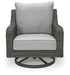 Add a distinguished touch of gray to your outdoor living space with this swivel lounge chair. It's made with resin wicker over an aluminum frame for a relaxed look that provides seasons of enjoyment. Rest assured, the thick seat and back cushions are wrapped in Nuvella® high-performance fabric that’s fade-resistant, stain-resistant and a breeze to clean.