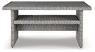 Indulge in backyard bliss. This outdoor multi-use table has a straightforward sense of style with its light gray resin wicker. The table's rust-proof aluminum is enhanced with a wood-look finish, weathering the elements and keeping your aesthetic casually cool.
