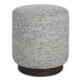 This plush ottoman is covered in a casual blue and white tweed fabric with a dark walnut stained oak base. Versatile and stylish, this piece can be used as a seat or footrest, grouped together or as a singular accent piece.