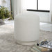 This plush ottoman is covered in white faux shearling paired with a wire brushed oak base in a modern white finish. Versatile and stylish, this piece can be used as a seat or footrest, grouped together or as a singular accent piece.