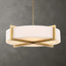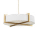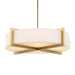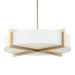 Hardback white linen hanging shade with architectural beam detail enhanced in a matte brushed brass finish with a lower faux alabaster diffuser. 4-60 watt max, Edison sockets. Bulbs not included. Supplied with 15' wire, 3-12" stems,and 1-6" stem for adjustable installation also includes 1-3" rod for semi-flush mounting option.