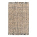 This hand woven rug features natural jute and undyed wool in tones of charcoal, gray, and tan.