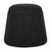 This plush ottoman is covered in a luxurious faux black shearling with black nickel nail head details. Versatile and stylish, this piece can be used as a seat or footrest, grouped together or as a singular accent piece.