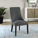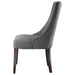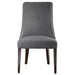Gracefully shallow side wings and tall, tapered legs make a sophisticated statement in rich hues of charcoal gray with dark walnut finished wood.