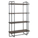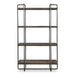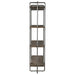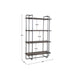 Exhibiting an urban industrial feel, this etagere features a steel frame finished in dark brushed pewter. The four floating shelves are constructed from recycled, reclaimed boat wood collected from old Chinese fishing vessels. This statement piece showcases years of use with natural wood grain texture that has subtle hints of color. Solid wood will continue to move with temperature and humidity changes, which can result in cracks and uneven surfaces, adding to its authenticity and character.
