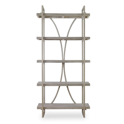 UttermostThe dramatic contrast of this asymmetrical etagere gives an updated contemporary feel, featuring elm veneer shelving finished in light gray, accent...