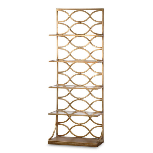 UttermostFeaturing a graceful forged iron fretwork back, this freestanding etagere is finished in a lustrous gold leaf finish with four tempered glass shelv...