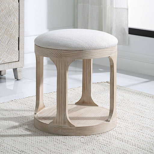 UttermostA statement stripe also acting as a neutral, the Dialogue accent stool features a slubbed boucle polyester in ivory, tan and brown tones over an oa...