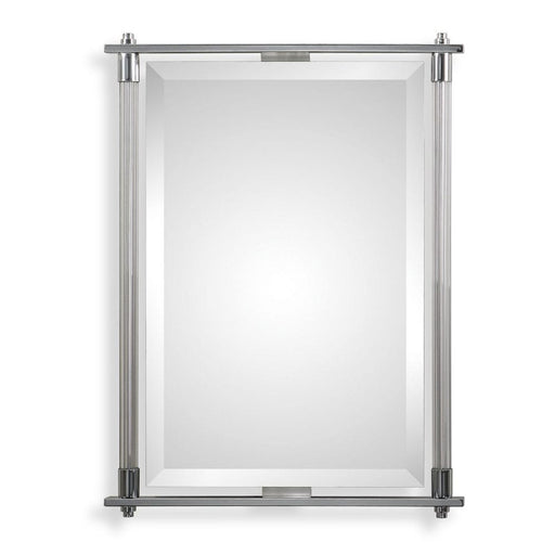 UttermostRibbed glass columns accented with polished chrome plated details. Mirror features a generous 1 1/4" bevel and may be hung horizontal or vertical.S...