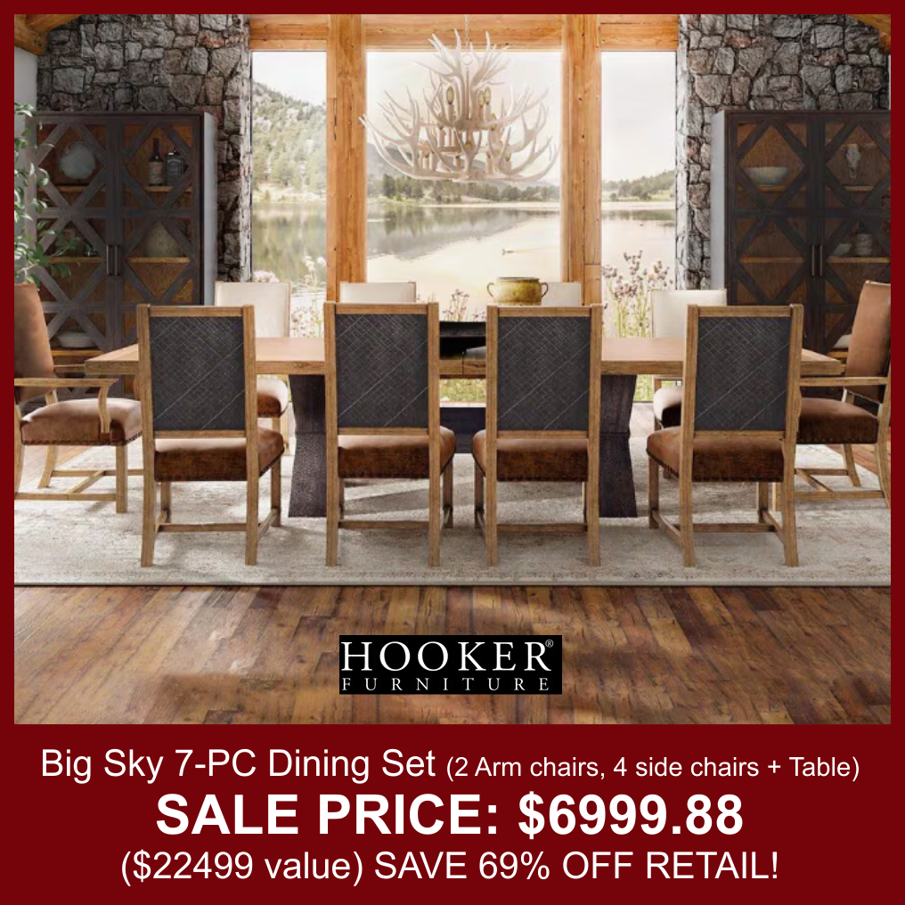 The natural beauty and near mystical experience of the American wilderness inspires a spirited collection from Hooker Furniture, a celebration of dramatic vistas and the freedom to roam, a land of rough-hewn timber and towering snow-capped peaks, boundless plains, and cool, clear mountain lakes. Hooker brings home a dream of wide-open spaces and a life lived in tandem with iconic landscapes with furnishings that evoke the weight, heft and heritage of post and beam construction, the mark and artistry of true craftspeople, and substantive, thoughtful designs right for today. Watch for warm, rustic, hickory veneer, and rich finishes like charred timber, dusk, and avalanche, organic textures like burlap and top grain leather, forged hardware, and classic moldings for the traditionalist. Those with a more modern bent will gravitate toward the clean lines of waterfall edges, crosshatch surfaces and planking details that speak to authenticity and the hand of the maker. Welcome to the peaceful, easy feeling of Big Sky. It’s time to simply breathe.