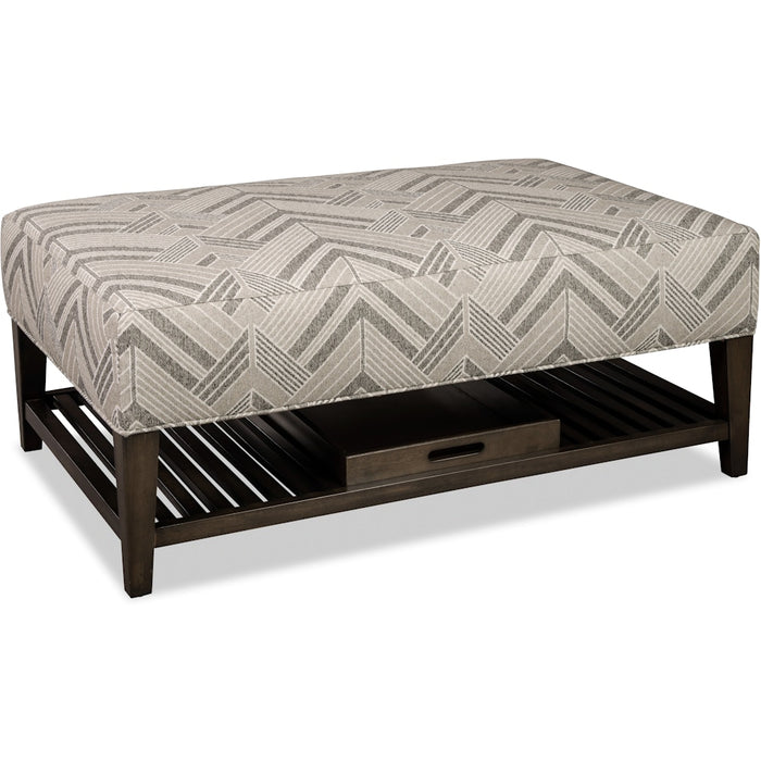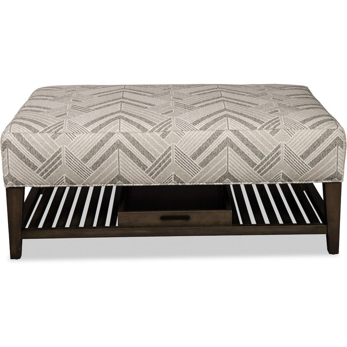 You'll love this cocktail ottoman for it's looks, but you'll really enjoy its functional side too. It features a plush top, slatted wood base, and handsome transitional lines. But hidden underneath is the real prize- a storage tray - perfect for snacks, beverages, or even a game. Use it anytime or all the time!