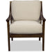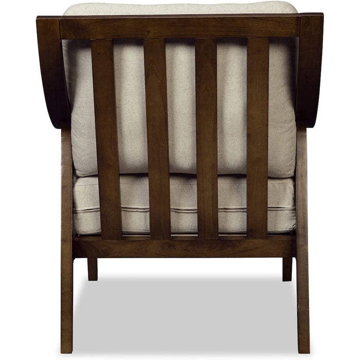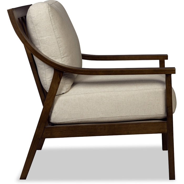 Add the richness of a wood accent chair to your modern living room! This piece features a sweeping slender arm and slatted back, so it looks great from any angle in your room. Loose back pillow, French seaming, Blend Down seat cushion.