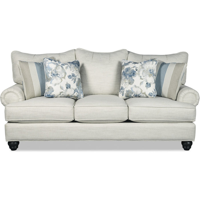 This is the piece you want to come home to each day. Exceedingly comfy, it features 3-seats, 3 loose bed pillow backs, and 4 accent pillows, along with turned legs and a set-back paneled roll arm. Make this sofa your perfect place for relaxing at home. Also available - matching loveseat, chair & 1/2 and ottoman.