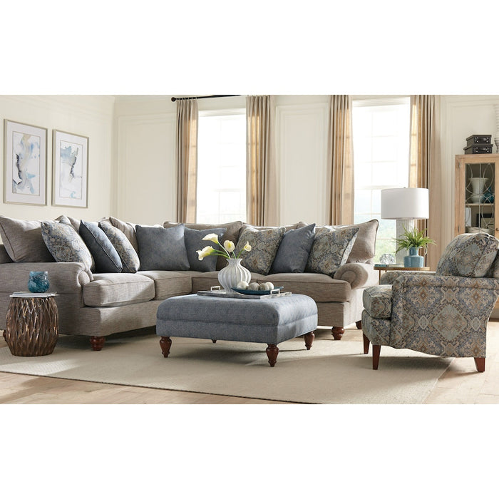 One of our all-time best sellers, this sectional has lots of style and with it's generous scale, it has room for the whole family! It features loose pillow backs and loads of accent pillows, along with turned legs and a set-back paneled roll arm. But the comfort is what will win you over- deep and plush, this sofa uses our premium cushion and backs to give you a perfect place for relaxing at home. Matching sofa, loveseat, chair and ottoman available as well.