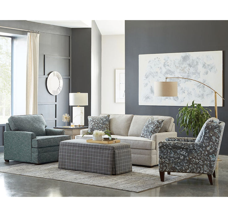 Hallie is quite the petite sophisticate! It's transitional flared arm paired with its comfortable design and small scale make it a true winner. The best part? Choose your custom fabrics and have it in your home ASAP! Featuring a sofa, loveseat, chair, and ottoman, this collection will complete your home.