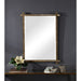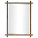 This mirror features an antique gold finished frame with ribbed texture, adding a tribal feel. The piece has a generous 1 1/4" bevel and may be hung horizontal or vertical.