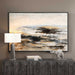 Strong, masculine shades are used in this modern abstract on canvas. The work is hand painted in bold charcoal, gray, and beige shades with pops of cobalt blue and bright gold leaf. A slim, black gallery frame completes the artwork. Due to the handcrafted nature of this artwork, each piece may have subtle differences.