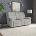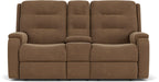Supportive Style Whether you’re napping or watching the big game, the Arlo Reclining Loveseat with Console keeps you comfy and puts items like remotes and beverages close at hand. The spacious center console includes storage for glasses, magazines and other personal items and features two cup holders. Designed to enhance your well-being, Arlo has pull-tufted, triple-divide back cushions for a distinctive look and comfortable feel. A contoured seat with chaise pad takes pressure off your legs as your sit, while our patented DualFlex Spring System™ provides firmness and flexibility. Rounded pad-over track arms cushion your forearms—something you’ll really appreciate if you’re spending hours gaming or streaming movies. Control the recline using an easy-access handle on either of the arms. To make Arlo your own, choose from over 250 fabrics options, including cleanable and durable performance fabrics. Center storage console features two cup holders and space to house remotes, magazines and other items Handle-activated recline system on the side of both arms allows you to manually adjust between sitting and reclining Pull-tufted, triple-divide back cushions support your back and have distinctive look Rounded pad-over track arms enhance comfort and provide additional forearm support Contoured seats with chaise pads for a comfortable, tailored look Built to last with our DualFlex Spring System™—sturdy steel ribbons attached to flexible coils that offer a wide range of motion and durability High-density cushions consist of a high-resiliency, high-density polyurethane foam core with a soft fiber wrap that ensures comfort as you sit and recline Available in durable, cleanable performance fabrics that will withstand everyday use by an active family Available in over 250 fabrics to suit any décor Removable backs allow for easy lifting and maneuvering through doorways Footrest easily lowers when you apply pressure in a downward motion Model Number: 2810-601 Dimensions 43H x 76W x 42L