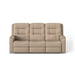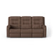 Supportive Style Stay comfortable and enjoy the luxurious look and feel of the Arlo Reclining Sofa, available in premium leather upholstery. While sitting together with your family, enjoy the support of pull-tufted, triple-divide back cushions which bolster your head, neck and lower back as you unwind. To recline, simply use one of the easy-to-access handles in either of the arms. As you are relaxing, sink into the comfort of contoured seats with chaise pads and take pressure off your forearms with rounded pad-over track arms. Our patented DualFlex Spring System™ ensures firmness and flexibility as you sit. To create a look that’s all your own, choose from one of more than 50 leather or leather match options that look elegant and are easy to clean. Handle-activated recline system on the side of both arms allows you to manually adjust between sitting and reclining Pull-tufted, triple-divide back cushions support your back and have distinctive look Rounded pad-over track arms enhance comfort and provide additional forearm support Contoured seats with chaise pads for a comfortable, tailored look Built to last with our DualFlex Spring System™—sturdy steel ribbons attached to flexible coils that offer a wide range of motion and durability High-density cushions consist of a high-resiliency, high-density polyurethane foam core with a soft fiber wrap that ensures comfort as you sit and recline Available in durable leather upholstery that holds up in the most demanding environments Available in more than 50 leather options to suit any décor Removable backs allow for easy lifting and maneuvering through doorways Footrest easily lowers when you apply pressure in a downward motion Model Number: 3810-62 Dimensions 43H x 87W x 42L