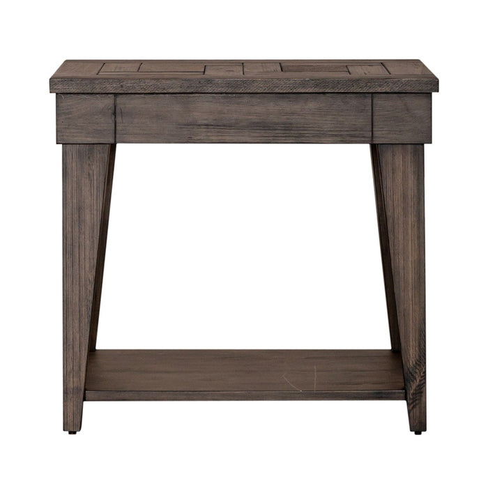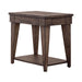 If you enjoy rustic the Arrowcreek chairside table is for you. Finished in a weathered stone with slate tile inserts in a basket weave design on top with tapered legs. Crafted with solid reclaimed pine and pine veneer with a bottom shelf for additional storage. Scaled perfect for space saving between two recliners or chairs.