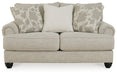 This loveseat has an alluring look that's guaranteed to turn heads. Richly textured fabric in a light, easygoing hue is enhanced by even lighter flax peeking through. Distinctive roll arms add a dab of debonair, while indulgently plush cushions cradle you softly. Sit back and relax in comfort and style, with plenty of room to stretch out and unwind at the end of a long day.