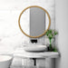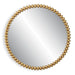 This round iron mirror features a sophisticated beaded profile in a rich antiqued gold leaf finish.