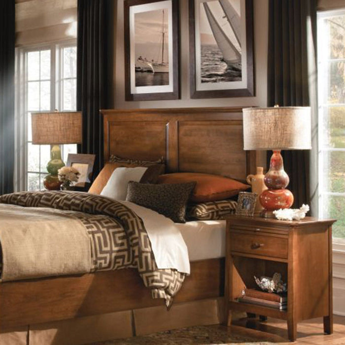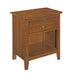 The Open Night Stand from our Cherry Park Collection is a perfect blend of elegance and functionality. Masterfully crafted from solid Cherry wood, this piece showcases the natural beauty and warm tones of its premium material. The nightstand features a single drawer, providing discreet storage for bedside essentials, while its open design offers easy access to the lower area. A thoughtful addition is the pull-out laminate shelf, offering extra space for books, electronics, or a late-night beverage. This versatile piece effortlessly complements various bedroom styles, from traditional to contemporary. Whether placed in a master suite or guest room, the Open Night Stand stands as a testament to timeless craftsmanship and practical design, creating an indispensable bedside companion that marries form with function.
