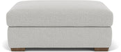 Stylish Simplicity Clean lines, block legs and an ultra-comfy cushion will make you want to lounge a little longer on the Collins ottoman. Offering a timeless, casual look, this ottoman invites you to lean back, kick up your feet and get comfortable. Pair it with the Collins chair for a perfectly coordinated look or use it as a standalone seating element. Offered in your choice of upholstery and finishes, this ottoman can be customized to suit your personal style. Transitional style with wide track arms Bold block legs come in your choice of finish Constructed with a durable five-layer wood frame with premium resistance to warping Upholstered in your choice of fabric, including those with performance and sustainability characteristics Handcrafted in North America Model Number: 7107-08 Dimensions 18H x 41W x 29L
