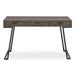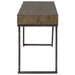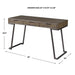 The Comrade Desk provides a perfect spot for ample productivity. The desk is finished in a mango wood veneer with light gray glazing and natural wood undertones, supported by a metal base in aged steel. Features three drawers with coordinating metal tab drawer pulls.