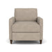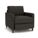Sweet and Architectural Clean lines and a cantilevered front make the Fern chair a welcome addition to any home. With generous seating space from arm to arm, Fern provides plenty of roomy comfort to lounge and relax. Round tapered legs positioned directly under the narrow track arms offer a distinctively modern architectural feel to spaces. A casual pleat design back cushion completes the on-trend look of Fern. Narrow track arms with soft curves for an elegant touch Round tapered legs Removable and reversible seat and back cushions allow you to flip and rotate them for even wear The patented Blue Steel Spring in the seat provides unmatched support and lasting comfort Sustainably sourced wood frame delivers exceptional durability Upholstered in your choice of fabric, including those with performance and sustainability characteristics Handcrafted in North America Model Number: 5011-10 Dimensions 36H x 33W x 38L