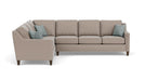 Tailored Elegance Simplicity and elegance combine in a sophisticated silhouette with the Finley sectional. With a distinctive profile featuring sloped, tapered track arms and attractive welt detailing, this modular design allows you to create your perfect size and configuration. The semi-attached back and removable, rearrangeable seat cushions make it easy to clean and maintain your sectional. Complete with our included accent pillows to elevate the look. This stately frame sits on sleek, square-tapered legs and is available in hundreds of fabric options to suit your style. Eleven sectional components to create a custom configuration that fits your unique space Sloped arms with welt trim for an elegant touch Square-tapered legs, available in three finish options Includes accent pillows in your choice of fabric to match your personal style Built to last with Flexsteel’s Blue Steel Spring™ seat system providing unmatched support and durability Sustainably sourced, kiln-dried wood frame with mortise and tenon joinery for lasting strength High-resiliency foam core seat cushions, engineered to maintain their shape over time, complete with a layer of recovery foam for everlasting quality and luxurious comfort Semi-attached back cushions for a neat appearance Removable and reversible seat cushions you can flip and rotate for even wear Upholstered in the expertly tailored fabric of your choice, including high-performance and sustainable options Handcrafted in North America Model Number: 5010-SECT Dimensions